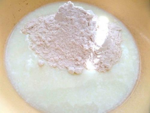 1. тесто готовится почти моментально. В кефир или простоквашу добавить соль и сахар. Всыпать постепенно муку с разрыхлителем. Вымешать тесто как на оладьи. Муки может быть и меньше. Дать немного постоять.