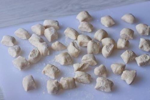 2. делим шар на 4 части и на присыпанном мукой столе формируем из них колбаски.