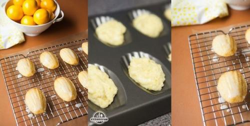 Взбить яйца, яичные желтки, сахар, ванильный экстракт, цедру и лимонный сок в течение 5 минут. Прибавить масло и взбить до однородности. С помощью шпателя, примешать смесь муки. Оставить на 30 минут.