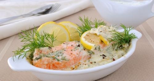 Это рыбное блюдо всегда изыскано и быстро готовится. Лосось получатся нежным и ароматным, но таким способом можно готовить практически любую рыбу. Дополнительно можно приправить сливочный соус тертым хреном, Карри, свежей кинзой или шафраном.