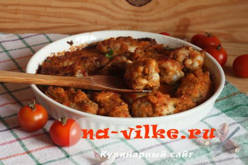 Слегка обмакнуть помидоры на веточке в оливковое масло, приправить и положить во вторую форму. Поместить форму с курицей на верхнюю полку духовки, а с помидорами — внизу и готовить 20 минут — пока тесто не станет золотым, а курица будет приготовлена.