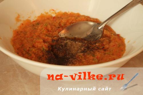 1. Чили крошим в ступке, колем семена фенхеля, откладываем эти специи.