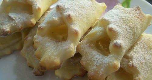 В перетертый творог влей кефир и понемногу добавляй муку. Тесто. Оно оно должно достаточно мягким и эластичным быть. очищенные яблоки тонкими ломтиками, чтобы они хорошо пропеклись.