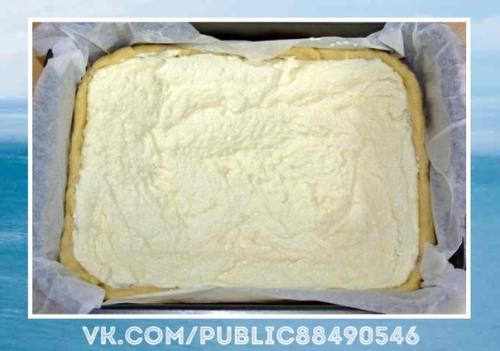 Распределяем творожную массу поверх песочной.