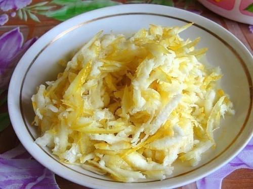 Лимон натрём на крупной тёрке вместе с цедрой.