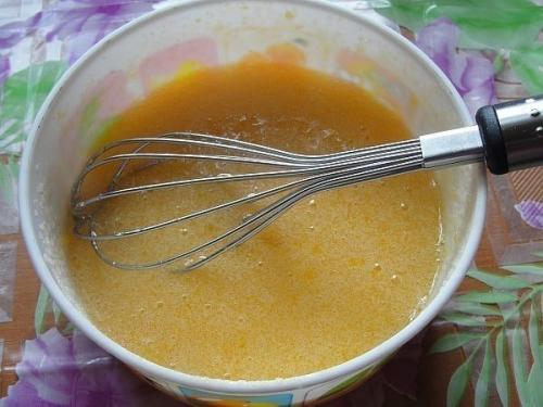 Через некоторое время приступим к дальнейшему приготовлению. В отдельной посуде разотрём яйца с сахаром, солью, и ванильным сахаром.