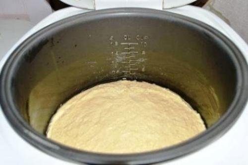 Шаг 5. полученное тесто выливаем в чашу и устанавливаем режим "Выпечка" на 50- 60 минут.