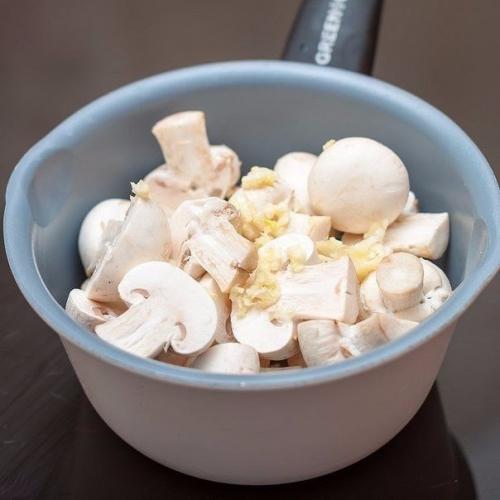 3. положить в маринад грибы и выдавить через пресс чеснок.