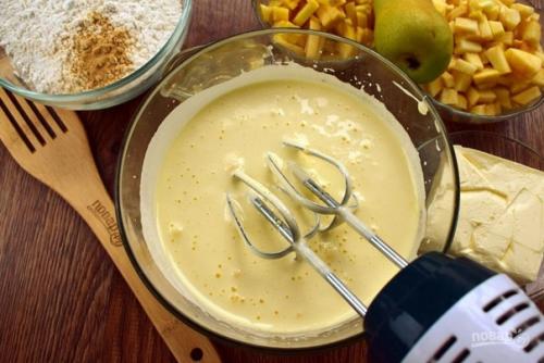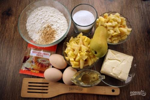 1. подготовьте необходимые продукты. Груши вымойте и нарежьте на мелкие кубики.