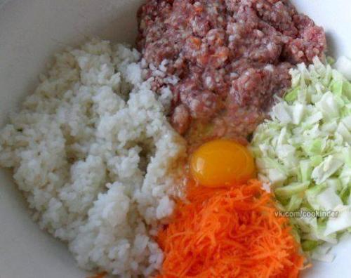 Рис отварить, морковь натереть на мелкой терке, капусту нарезать, как можно мельче, добавить фарш, яйца, посолить, поперчить конечно, кто любит лук, то обязательно добавить, все перемешать приготовить соус, для этого смешать томат. Пасту и сметану, добавить соль и свои любимые специи, а дальше дело каждого, кто то формирует в форме тефтелек, кто то в форме котлеток и обжаривают первоначально, но у меня же все быстро, позтому процесс жарки я избегаю, формирую в виде тефтелек и отправляю в форму заливаю приготовленным соусом и отправляю в духовку минут на 30 вынуть готовое блюдо.