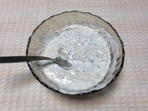 3. приготовить сметанный соус для запекания картошки: в сметану добавить соль и перец, а также муку для загустения. Укроп и чеснок добавить. Все перемешать.