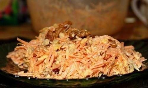 6. получившейся смесью заправляем морковь с грецкими орехами.