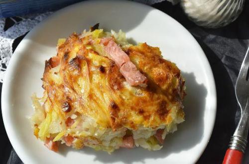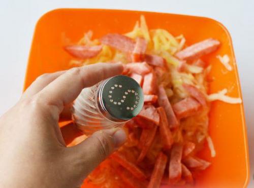 Туда же выложите колбасу.