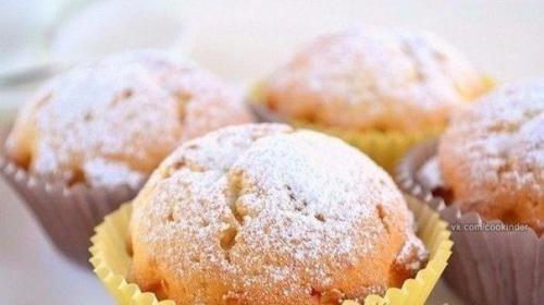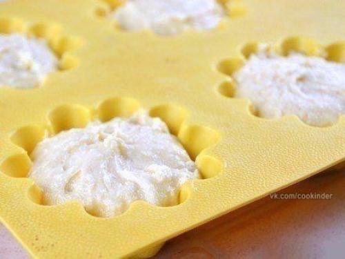 Муку предварительно просеять. Добавить разрыхлитель, муку, немного взбить миксером. Тесто густое и пластичное получается. Форму или формочки маслом смазать. Творожное тесто в формочки на 3/4 по высоте выложить. Поставить в разогретую до 180 градусов духовку. Выпекать примерно 35-40 минут. Готовые кексы вынуть из формочек и полностью остудить. Еще лучше оставить их на несколько часов или на ночь. Творожные кексы сахарной пудрой посыпать.