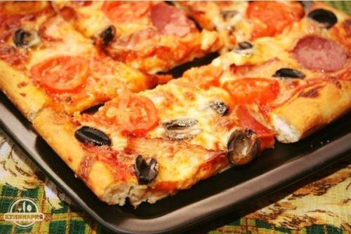 1. эту пиццу диетической, конечно, не назовешь, зато какая она вкуснющая! У нее мягкое воздушное тесто с хрустящей корочкой по краям и ароматная мясная начинка. По размеру она занимает целый противень, так что если у вас большая семья, она будет как раз кстати. А если нет - приглашайте друзей и приступайте к замешиванию теста.