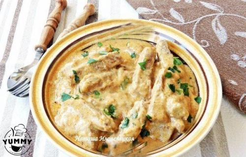 Мясо тушеное со сметанкой.