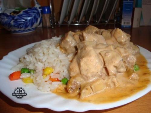 Мясо в сырном соусе.
