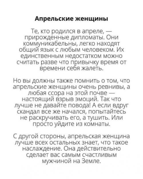 Женщины, рожденные в марте, обладают сильнои харизмои и обаянием. Они очень верны, поэтому обычно им доверяют самые сокровенные секреты.