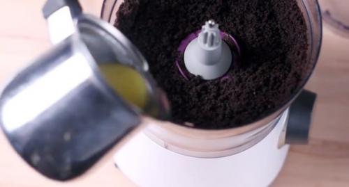 С помощью кухонного комбайна или блендера измельчи печенье вместе с растопленным сливочным маслом.