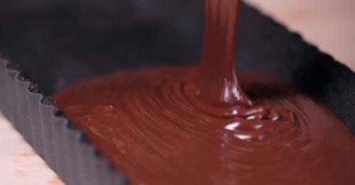 На охлажденную базу для торта вылей шоколадный крем. Процесс приготовления доставит тебе эстетическое удовольствие ….