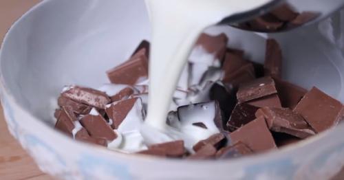 Шоколад и сливки до однородного состояния размешай. Идеальный крем получится!