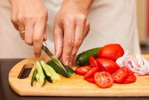 5. огурцы нарезать брусочками, помидоры кольцами, красный лук дольками.