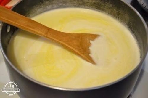 3. в большой кастрюльке смешать молоко, сахар и масло для начинки, довести до кипения.