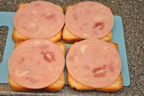 3. отправить противень с 8 бутербродами в нагретую духовку и запекать при 180\xB0C, пока не "Схватятся" яйца и не расплавится сыр. Приятного аппетита!