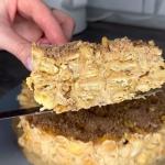 4 слой - грецкие орехи (мелко натереть на терке или размельчить в блендере);.