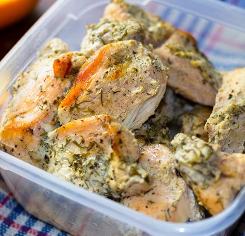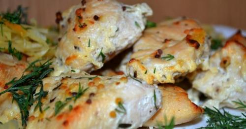 Кусочки курицы переложить в емкость для маринования и залить кефиром, чтобы он полностью покрыл курочку. Оставить мариноваться минимум на 2 часа.