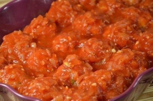 8. подготовленные мясные шарики залейте томатным соусом и отправляйте тефтели в разогретый до 180-200 C духовой шкаф.