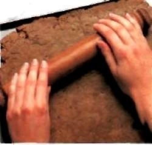 Растапливаем на медленном огне шоколад и мы смешиваем его с мягким сливочным маслом. Отдельно взбиваем яйца с сахаром, добавляем щепотку соли и муку. Затем в полученную смесь добавляем шоколад с маслом и хорошенько перемешиваем. Далее тесто выкладываем на посыпанную мукой поверхность и легонько месим. Затем раскатываем тесто до толщины около 5 мм.