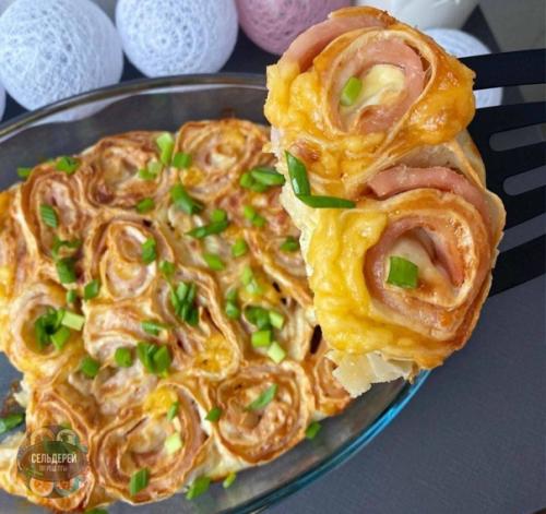 Закручиваем в рулетик и разрезаем порционно.