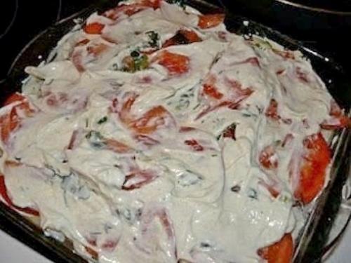 1. многие соблюдают пост, поэтому сливки можно заменить рыбным бульоном. И тогда верхний слой вместо сыра можно выложить лук со сладким перцем, будет не менее вкусно. Картофель мы режем кружочками потоньше, лук кольцами или полукольцами - кому как удобно, помидоры тоже можно нарезать кольцами или полукольцами, рыбку небольшими кусочками.