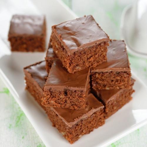 2. добавить яйца, ванилин и муку, просеянную с разрыхлителем, взбить миксером. 3. вылить тесто на смазанный маслом противень. Поставить на 30 минут в предварительно разогретую до 175 с духовку. 4. вынуть корж из духовки. Через несколько минут залить его отложенной шоколадной смесью. Дать остыть и разрезать пирог на квадраты. Приятного аппетита!