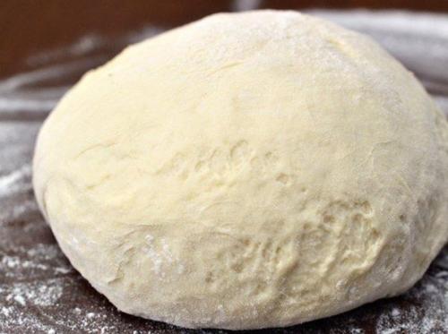3. подошедшее тесто замешиваем, пока не будет прилипать к рукам.