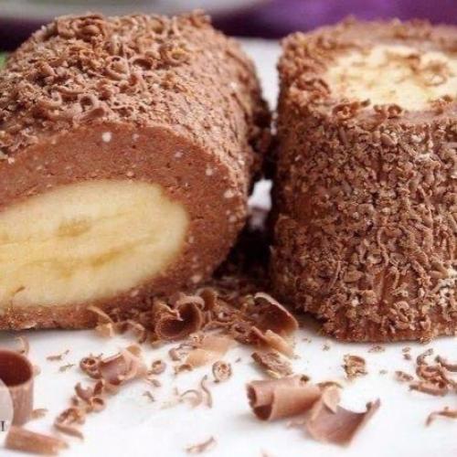 Шоколадно - творожную массу распределить на пищевой пленке, положить банан и сформировать в виде колбаски. Убрать в холодильник для застывания. Через пол часа, достаем украшаем по вкусу и кушаем. Приятного аппетита.