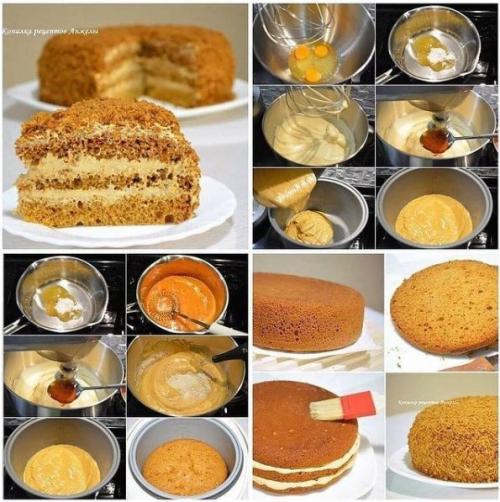 Очень вкусный, нежный и влажный бисквитный медовик со сливочным кремом.