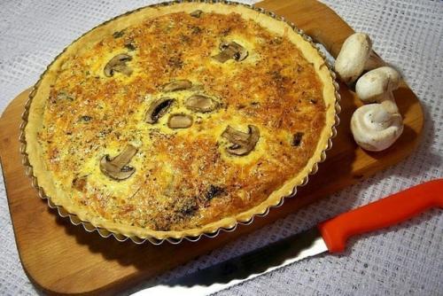 Теперь соберем все ингредиенты: в тесто переложим грибы с луком, отварное Филе (оно уже должно быть готово), порезанное мелкими кусочками, при желании мы добавим сухие специи или сухую зелень.
