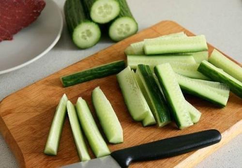 - 2 тонких длинных огурца - 400 гр. (Или немного меньше) мяса говядины.