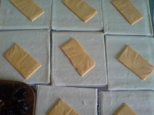 2. разморозила слоёное тесто, мне попалось уже нарезанное на квадраты.