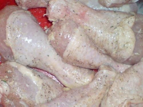 1. сегодня на обед я приготовила окорочка, которые стояли ночку в холодильнике и мариновались в соли, перце и чесноке.