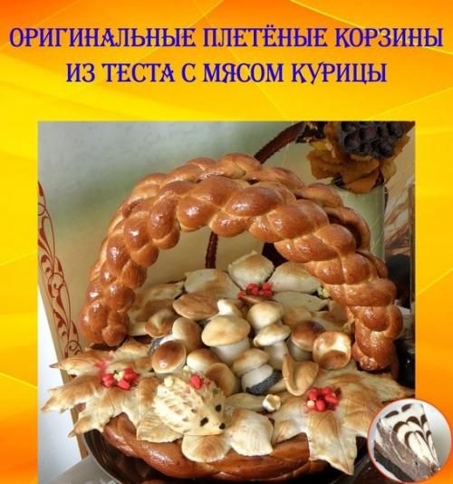 Сделать две основы в виде корзины. Поместить начинку. Сверху переплести из теста прутья. Смазать желтком.