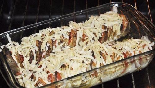 2. сыр нарезаем ломтиками. Чередуем друг с другом кружочки кабачков, помидоров и сыр, чеснок тонкими пластинками. Посуду предварительно смажьте растительным маслом. Приготовим заливку, смешайте масло, соль, перец, базилик, чеснок. Приготовленной смесью поливаем кабачки и запекаем их в духовке до готовности. Посыпаем сыром и ещё 3 минуты в духовке. Готовое блюдо зеленью посыпать! Приятного аппетита!