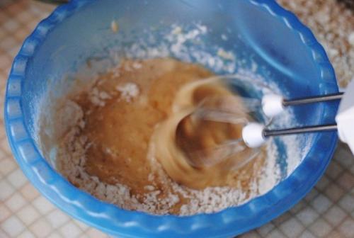 2. отдельно взбить яйцо и добавить в первую смесь.