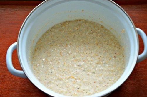 2. молоко подогреть и залить молотый геркулес, оставить на 30 минут.