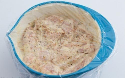 Хорошенечко перемешайте и оставьте мариноваться на час в холодильнике.