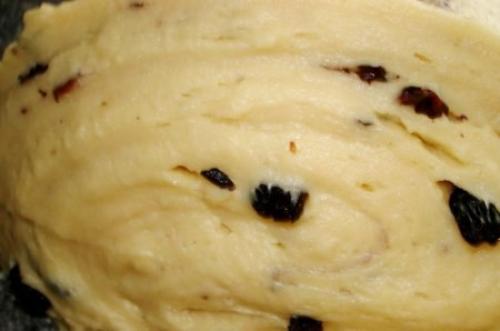 Шаг 5 добавляем в опару соль, ванилин и просеянную муку, хорошо промытый изюм, обсушенный и обваленный в муке. Вымешиваем тесто долго, минут 20. Таким образом, если, разрезая тесто острым ножом, тесто не липнет, значит оно хорошо замешано.