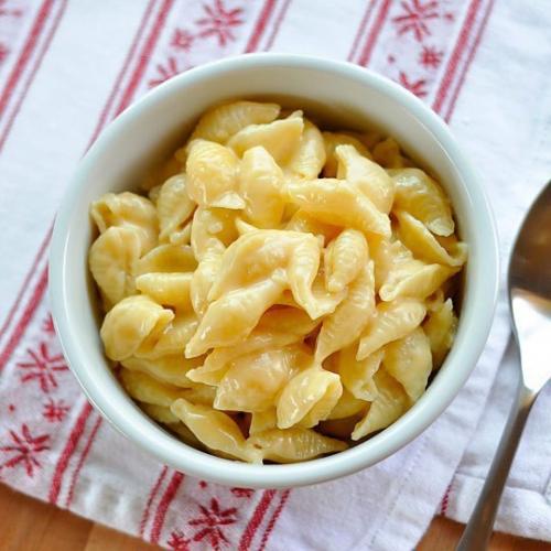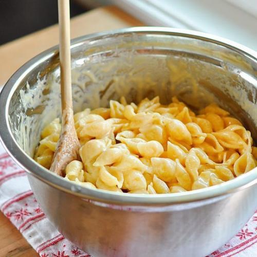 В большой миске смешиваем пасту с 1/2 сырного соуса. Перемешать, чтобы макароны были равномерно покрыты соусом. Добавить вторую половину соуса и еще раз все перемешать. Когда такое простое блюдо готовим дома с фото рецептом, то его приготовить очень просто. Приятного аппетита!