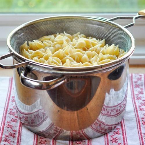 1. отварить пасту: берем большую кастрюлю и наливаем в нее около 4 литров воды, мы доводим до кипения на сильном огне. Затем добавить макароны и столовую ложку соли. Варить около 8 минут. Далее слейте воду и отложите в сторону.